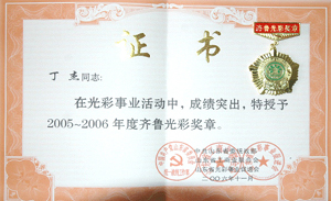 ·2006年11月,丁杰董事長(zhǎng)獲得“2005-2006年度齊魯光彩獎(jiǎng)?wù)隆?br>