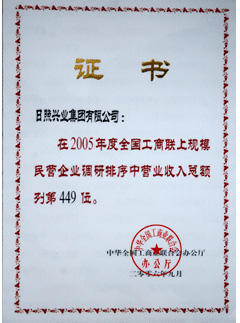 ·2006年9月,全國(guó)工商聯(lián)上規(guī)模民營(yíng)企業(yè)調(diào)研排序中營(yíng)業(yè)收入總額列第449位