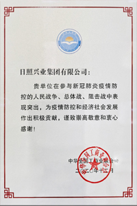 2020年12月,興業(yè)集團榮獲“日照市抗擊新冠肺炎疫情先進集團”