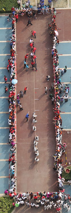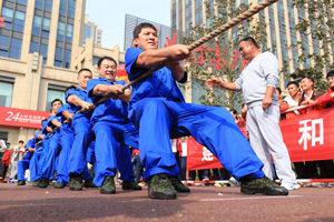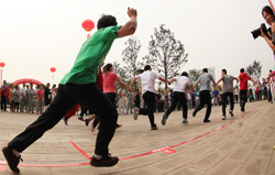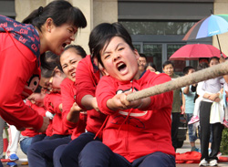 當(dāng)天,來自興業(yè)集團(tuán)各下屬單位的8支代表隊(duì)476名運(yùn)動(dòng)員精神飽滿地參加了“團(tuán)體跳繩”、“開火車”、“協(xié)作運(yùn)球接力”、“車輪滾滾”、“滾雪球”、“拔河”等團(tuán)體項(xiàng)目的比賽,整個(gè)現(xiàn)場(chǎng)氣氛熱烈,充滿激情,充分展示了“務(wù)實(shí)、創(chuàng)新、拼搏、進(jìn)取、奉獻(xiàn)”的興業(yè)精神和活力、和諧的企業(yè)風(fēng)采。另外,興業(yè)社區(qū)中老年文體活動(dòng)俱樂部在開幕式上進(jìn)行了太極拳和健身操表演。精彩的開幕式表演和緊張激烈的比賽吸引了眾多市民駐足觀看。