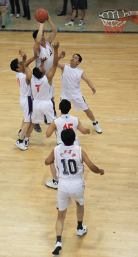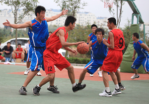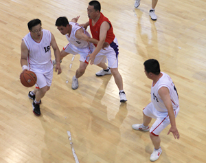 在比賽過程中各支代表隊(duì)都發(fā)揮出了極高的水平,為觀眾奉獻(xiàn)了一場場精彩的比賽。尤其在9月20日上午的交叉賽中,興業(yè)汽配代表隊(duì)與天泰鋼結(jié)構(gòu)代表隊(duì)勢均力敵,比賽中雙方比分交替上升,離結(jié)束還有不到20秒時(shí),汽配代表隊(duì)61:58領(lǐng)先3分并持有球權(quán),此時(shí)汽配隊(duì)員的心理感覺穩(wěn)操勝券,一個(gè)不經(jīng)意的走步把球權(quán)送給對手,離結(jié)束不到2秒,鋼構(gòu)中鋒馬沖順勢強(qiáng)攻,一記精準(zhǔn)的3分遠(yuǎn)投, 將比分追成61平,使比賽拖進(jìn)加時(shí)。在加時(shí)賽中,汽配中鋒崔冰連續(xù)中投得手,興業(yè)汽配代表隊(duì)最終以73:65的比分完勝鋼構(gòu),躋身本屆籃球比賽的冠、亞軍決賽。因?yàn)樘鞖庠颍?月20日下午的半決賽、決賽和驥翼組籃球表演賽改在日照一中室內(nèi)籃球場舉行。半決賽、決賽異常激烈,特別是在興發(fā)和汽配之間進(jìn)行的決賽,展示了興業(yè)集團(tuán)籃球的實(shí)力和水平,興發(fā)隊(duì)員們一次次嫻熟的配合,一個(gè)個(gè)精彩的扣籃,不時(shí)獲得現(xiàn)場觀眾的陣陣喝彩和掌聲。集團(tuán)驥翼隊(duì)與興發(fā)驥翼隊(duì)的籃球表演賽同樣上演了群雄大戰(zhàn),集團(tuán)驥翼隊(duì)在王建國總經(jīng)理帶領(lǐng)下,抗拒了體力不足,堅(jiān)持打滿全場,最終以44:44的比分和興發(fā)驥翼隊(duì)握手言和(因?qū)俦硌葙惒辉偌訒r(shí)),也宣告興業(yè)集團(tuán)第五屆職工運(yùn)動(dòng)會(huì)籃球比賽鳴金收兵。