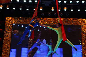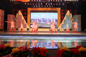 整場(chǎng)晚會(huì)以興業(yè)集團(tuán)成立10周年走過的光輝歲月為主線,在興發(fā)公司選送的歌伴舞《吉祥頌》中拉開了帷幕,伴隨著激越的鼓點(diǎn)、歡快的舞蹈、喜悅的歌聲,霎時(shí),千米演播大廳成為了歡樂的海洋。興業(yè)房產(chǎn)公司選送的歌舞《紅旗飄飄》、《愚公移山》,唱出了興業(yè)人對(duì)偉大祖國(guó)的熱愛和百折不撓的創(chuàng)業(yè)精神;興業(yè)汽配公司選送的《前門情思大碗茶》京味十足,集團(tuán)機(jī)關(guān)選送的原生態(tài)陜北民歌《山丹丹花開紅艷艷》和青春奔放的流行歌曲《改變自己》,展現(xiàn)了興業(yè)人多才多藝的時(shí)代風(fēng)采;天泰鋼構(gòu)公司田雯雯一曲《美麗心情》抒發(fā)了興業(yè)人對(duì)美好生活的熱愛和追求;房產(chǎn)公司姑娘們表演的富有濃郁民族特色的新疆舞《西域風(fēng)情》,勾起觀眾對(duì)邊疆風(fēng)情的片片遐想。集團(tuán)機(jī)關(guān)創(chuàng)作的配樂詩朗誦《興業(yè)十年頌》和音樂群口快板《說唱興業(yè)房產(chǎn)》,讓全場(chǎng)觀眾打開記憶之門,重溫了興業(yè)集團(tuán)10年的發(fā)展歷程,更是喚醒了興業(yè)人強(qiáng)烈的歷史使命感和自豪感,迸發(fā)出一股強(qiáng)大的自我升華的豪邁激情。青島永杰的姑娘們帶來的《激情水鼓》,奏響迎春盛典,震耳欲聾的鼓聲配合激昂的音樂,水花飛濺,光芒四射,引爆全場(chǎng)激情。友誼商店的姑娘們表演的運(yùn)動(dòng)時(shí)裝秀和社區(qū)老年人表演的太極功夫扇《夕陽美》,活力十足的青春魅力與剛?cè)岵?jì)的白發(fā)矍鑠,演繹出了一幅興業(yè)大家庭的和諧美景。公司選送的小品《風(fēng)波》和興發(fā)公司選送的山東快書《大老郭趕春晚》,情趣交融,令人捧腹,反映出了當(dāng)代建筑工人的情感世界和興業(yè)人對(duì)企業(yè)的無限熱愛之情。雜技《夢(mèng)幻藍(lán)綢》驚險(xiǎn)刺激,動(dòng)人心魄,引起場(chǎng)下觀眾陣陣驚呼。當(dāng)全場(chǎng)觀眾期待已久的北京《OOB美少女組合驚艷亮相時(shí),場(chǎng)下掌聲雷動(dòng),歡呼一片,動(dòng)感十足的青春美少女用她們的成名作《地球媽媽》和一首《心想事成》,甜歌勁舞,征服了全場(chǎng)觀眾,再掀晚會(huì)新高潮!吧揭粯拥臍馄牵R粯拥幕,春天里走來了興業(yè)人”,伴隨著晚會(huì)主題歌曲《興業(yè)春天》的響起,《興業(yè)春天》興業(yè)集團(tuán)2010年春節(jié)聯(lián)歡晚會(huì)華彩落幕。